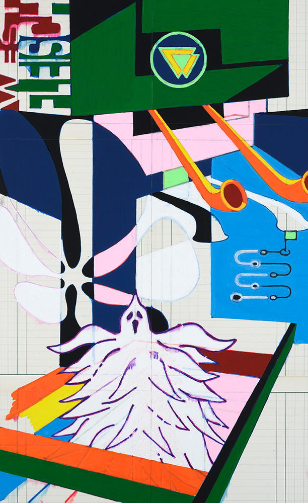 WEST FLEICH, 2025, Acryl-Marker, Tusche, Permanent-Marker auf Papier auf Pappe aufgezogen, 58 x 36 cm
